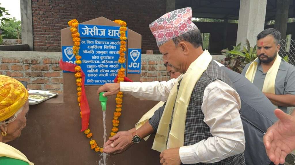 मेचीनगर ४ आमडाँगीका राहुल भातरी (रबिन) ले आफ्ना बुबा टिकाराज भारतीको स्मृतिमा निर्माण गरिदिनु भएको उक्त जेसीज धाराको लक्ष्मी पुजाको अवसर पारेर उद्घाटन गरिएको हो । यस अघि टंकबहादुर देवकोटाको स्मृतिमा पहिलो जेसीज धारा निर्माण गरिएको थियो । वैदेशिक रोजगारीको क्रममा दुवहीमा रहेर काम गर्दै आएका भारतीले यस अघि पनि विभिन्न क्षेत्रमा सहयोग गर्दै आउनु भएको थियो ।