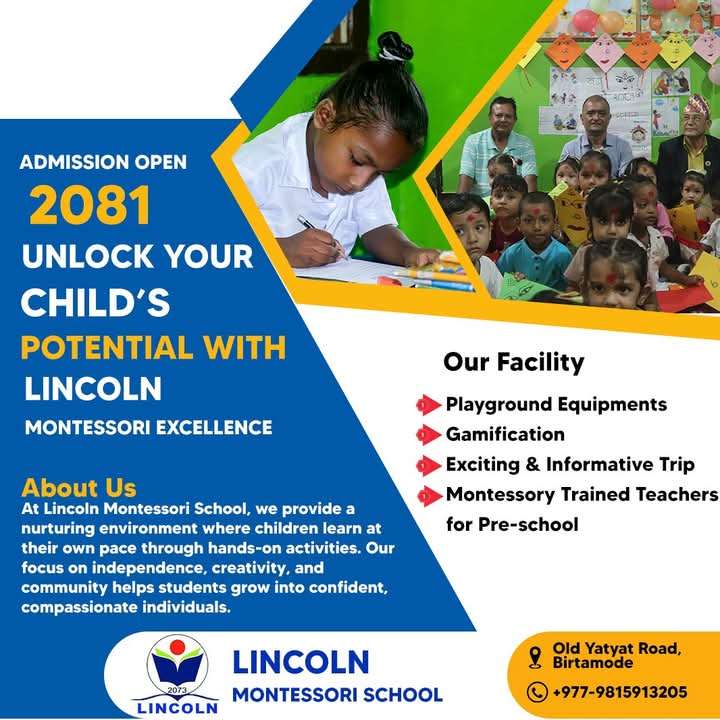 बिर्तामोड माघ १६ ।। बालमैत्री वातावरणमा पठनपाठन गराइरहेको बिर्तामोड ३ स्थित लिङ्कन मोन्टेश्वरीले सरस्वतीको पूजाको अवसरमा निःशुल्क भर्ना अभियान संचालन गर्ने भएको छ ।