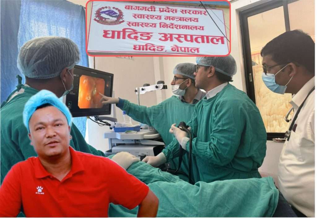 ‘एन्डोस्कोपी गर्न एन्डोस्कोप नामक विशेष उपकरण प्रयोग गरिन्छ । एन्डोस्कोप एउटा लामो, पातलो, लचिलो नली हो । जसको अगाडि क्यामेरा र बत्ती जडान गरिएको हुन्छ । धादिङ अस्पतालमा यो सेवा पहिलो पटक आजबाट सुरु गरिएको हो’ उनले भने ।
