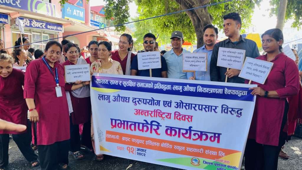 धादिङ : जिल्ला प्रशासन कार्यालय धादिङको आयोजनामा लागु औषध दुरुपयोग एवं ओसारपसार विरुद्ध अन्तर्राष्ट्रिय दिवसको अबसरमा पृथ्वीराजमार्गको मलेखु क्षेत्रमा प्रभातफेरी र सचेतना सभा सम्पन्न भएको छ ।