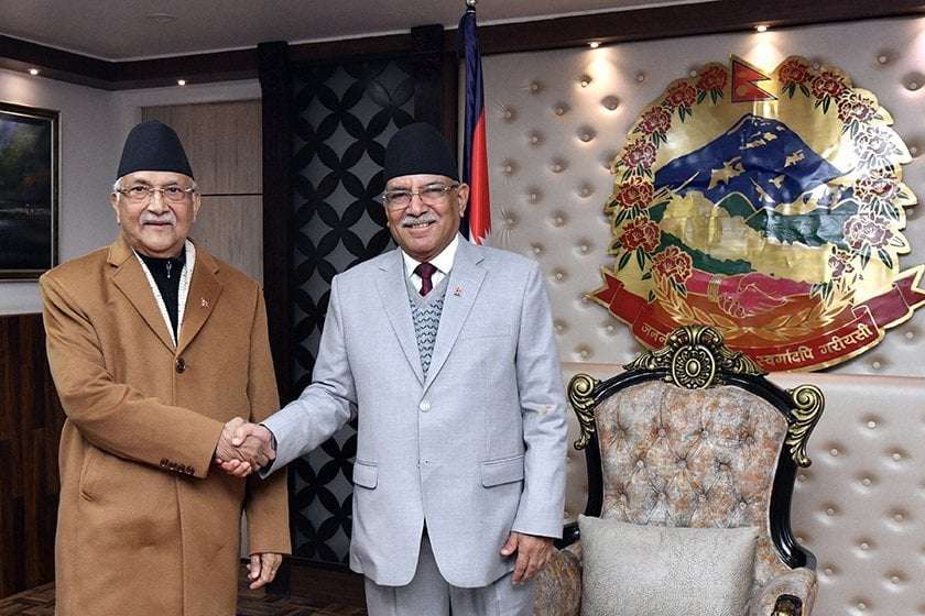 प्रचण्डले ओलीलाई ‘एक वर्षपछि यहाँ नै प्रधानमन्त्री बनिहाल्नुहुन्थ्यो, किन यति चाँडै सरकार परिवर्तनको खेलमा लाग्नुभयो भनेर प्रश्न पनि गरेका थिए।