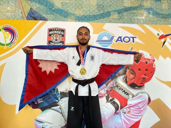 बिर्तामोड साउन २९।।थाइल्याण्डको बैंककमा आयोजित सातौँ हिरोज अन्तर्राष्ट्रिय तेक्वान्दो च्याम्पियनसिप अन्तर्गत झापा अर्जुनधाराका विवेक गिरीले स्वर्ण पदक जितेका छन् । गिरीले पुम्से प्रदर्शनमा स्वर्ण जितेका हुन् । स्वर्ण जित्नका लागि उनले तीन राष्ट्रका खेलाडीसँग प्रतिस्पर्धा गर्नु परेको प्रशिक्षक दिपेन दनुवारले जानकारी दिए ।